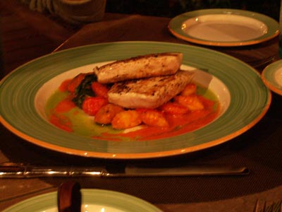マヒマヒのソテーとニョッキ。こちらも文句なしの◎。