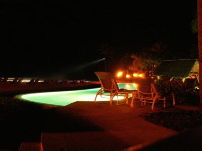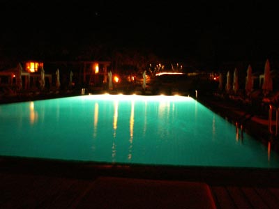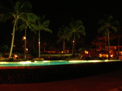 夜のリゾートをブラブラ。こちらはシー・シェル・プール。子供用プールも