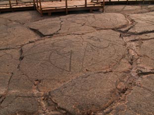 木道で囲われている中央部分に沢山のペトログリフが残されています。
