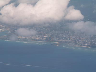 高層ホテルとマンションが建ち並ぶワイキキ・ビーチ。