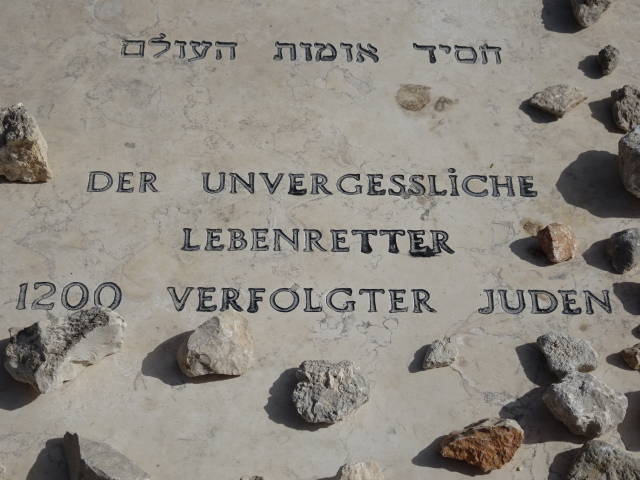 ドイツ語で、「迫害された1200人のユダヤ人の、忘れられない命の恩人」と書かれてます。
