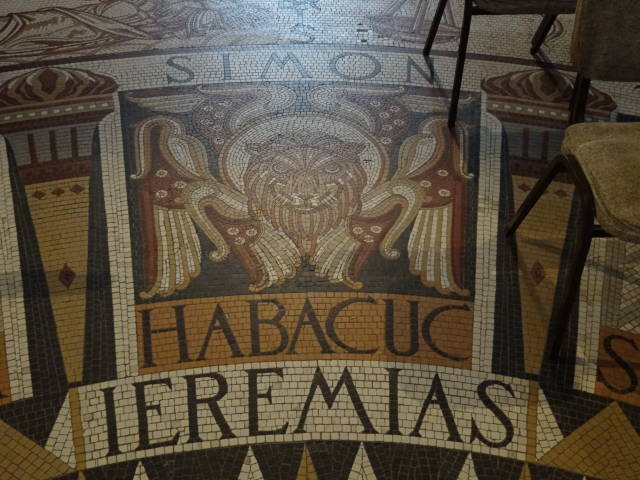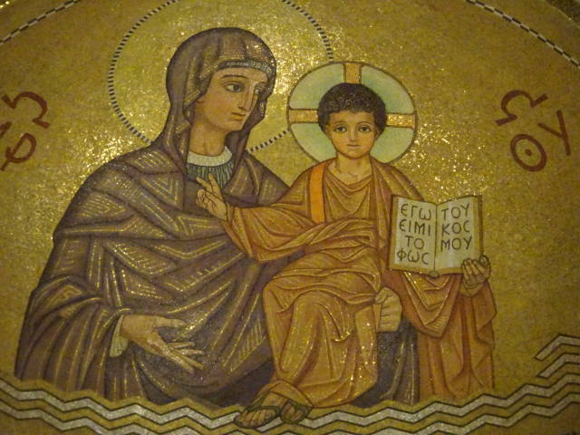 ビザンチン時代のモザイクを見ながら、階段を下りて礼拝堂へ。