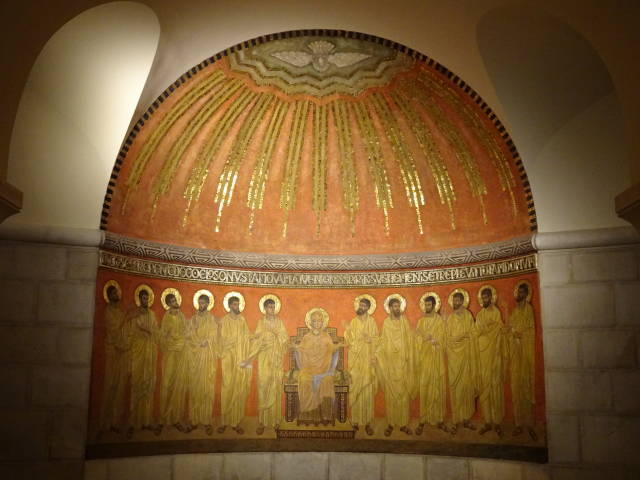 三位一体や12使徒、12官などを描いた、こちらのモザイクも凄い! 地下聖堂は音響効果が抜群で、クラシック音楽のコンサートも開催されるそうです。