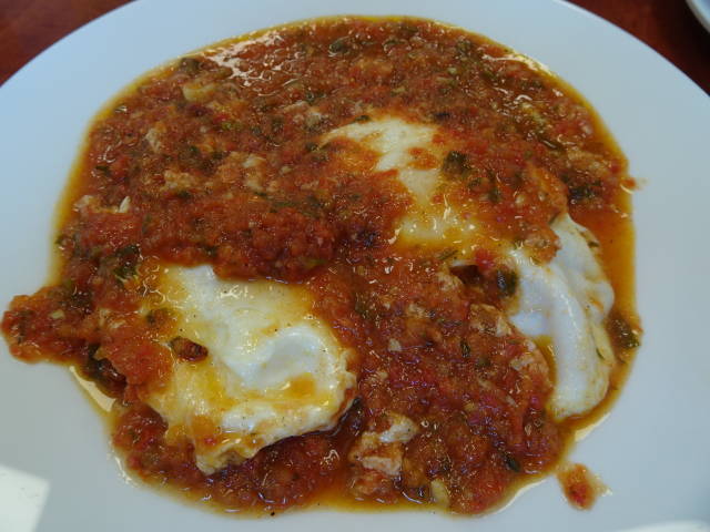 シャクシューカ(煮込んだトマトとタマゴを使った、代表的なイスラエル料理)と、店主オススメの鶏肉ライスを発注。