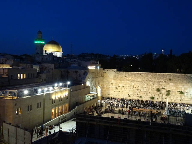 19時過ぎにホテルを出て、嘆きの壁を見下ろせる高台へ。
