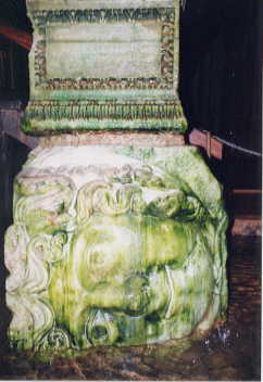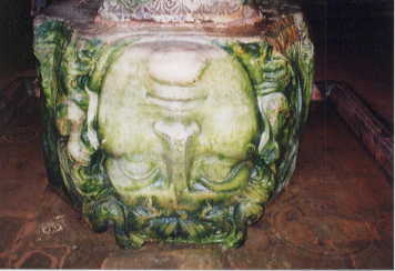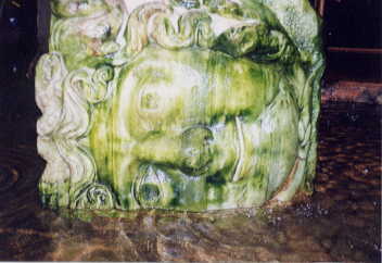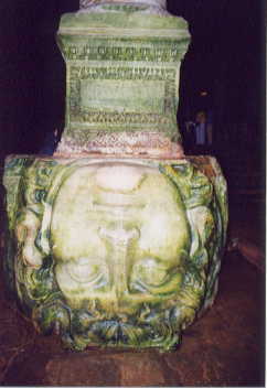 一番奥の2本の柱の下には、大理石でできたメデゥーサの首が1つは逆さまに、