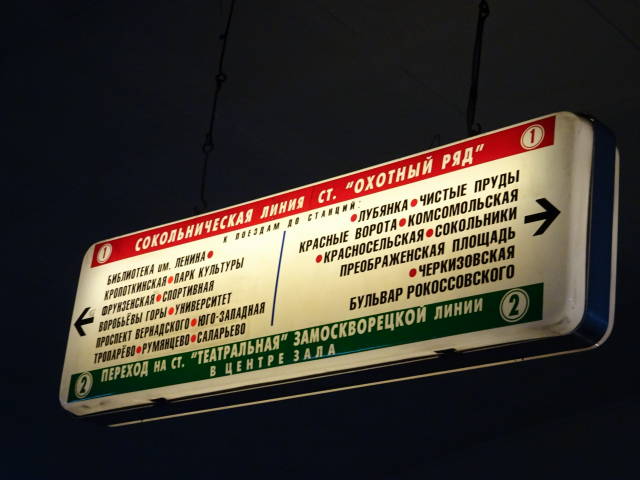 コロメンスカヤ駅から2号線でチアトラリナヤ駅→オホトニ・リャト駅から1号線に乗り換えてクロポトキンスカヤ駅で下車。