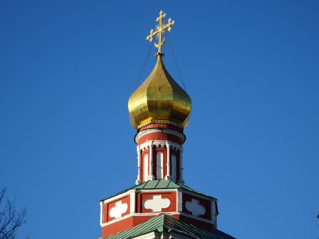 改めて電車に乗ってコロメンスカヤ駅へ移動して、歩いて公園へ。ロシア正教会の「フラム・カザンスコイ・イコニ・ボジエイ・マテリ・フ・コロメンスコム」。