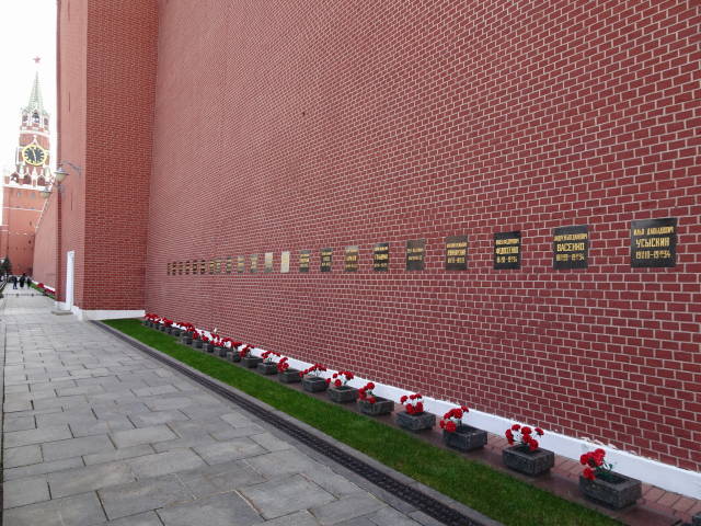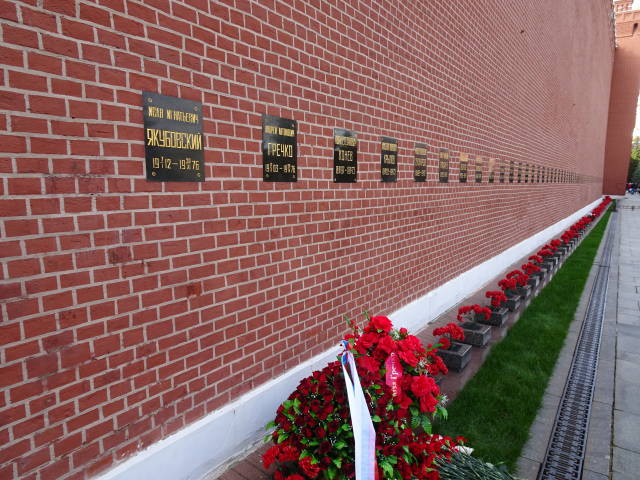 クレムリンの赤い壁の中には、旧ソ連の英雄115人の遺骨が埋め込まれています。