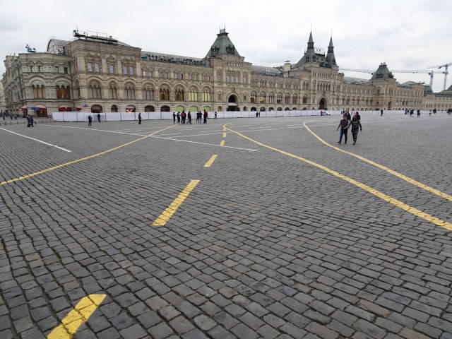 再び「赤の広場」へ戻って、時間潰しに「グム百貨店」へ。1階の土産物店を一通り見たけど、どれもスーパー観光地プライス! 何も買わずに撤収。