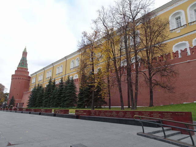 「イワン大帝の鐘楼」と「スパスカヤ塔」の間には歩道が敷かれてるけど、「旧元老院」の方へ外れると警備員に注意されます。