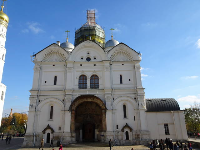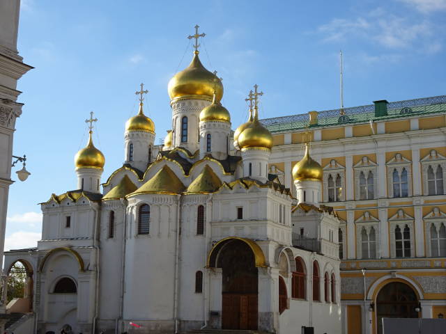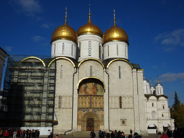左から「ブラゴヴェシチェンスキー聖堂」、「アルハンゲルスキー聖堂」、右の2枚が「ウスペンスキー大聖堂」。