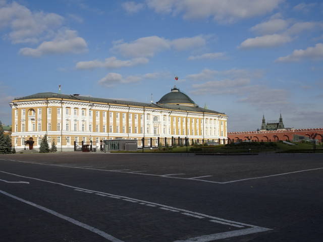 「イワン大帝の鐘楼」を背に、「スパスカヤ塔」へ向かって歩くと、左側にあるのが「旧元老院(ロシア大統領官邸)」。