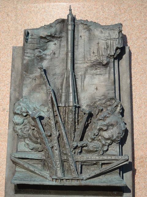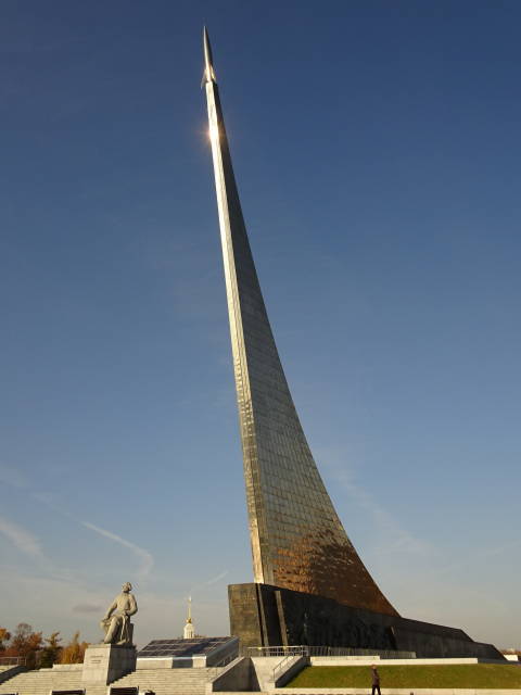 オベリスクの前に置かれているのは、「宇宙旅行の父」と呼ばれる、コンスタンチン・ツィオルコフスキーの像。