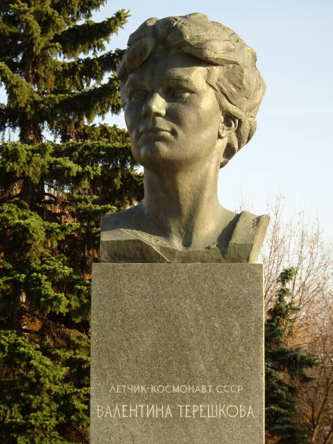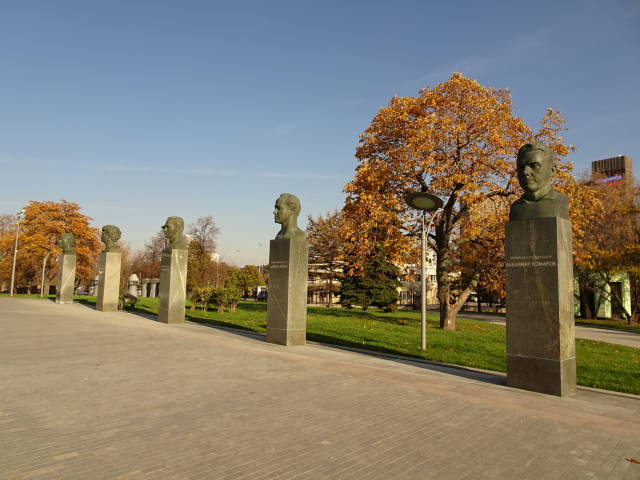 広場の南側に立つ、ソ連宇宙開発に関連した重要人物の石像。