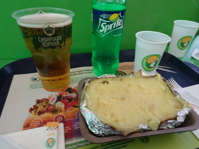 ルーブルを使い切るため、空港内のファストフード店「クローシュカ・カルトーシュカ」へ。