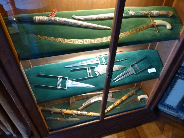 展示されている武器は、19世紀当時の城主が世界一周旅行をした折に持ち帰った物。
