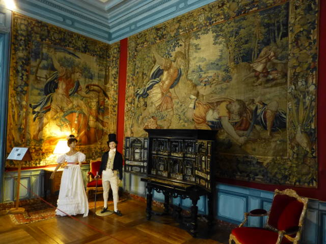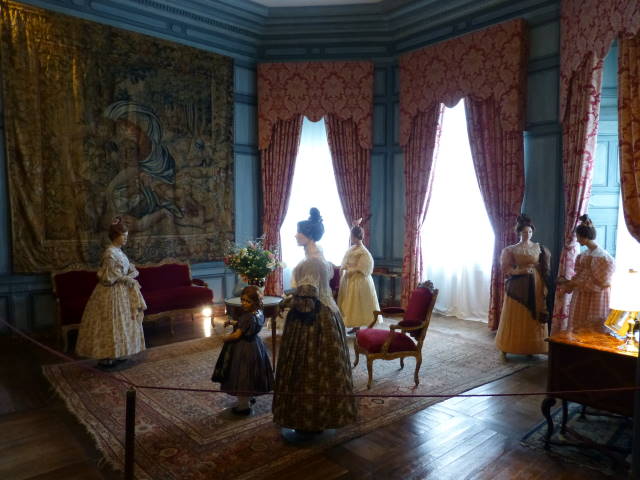 この城の特徴は、各時代の代表的な衣装をまとったマネキンが展示されていること。