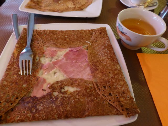 シードル(cidre)と一緒に頂くのがブルターニュ流れ。セットで8.6EURでした。