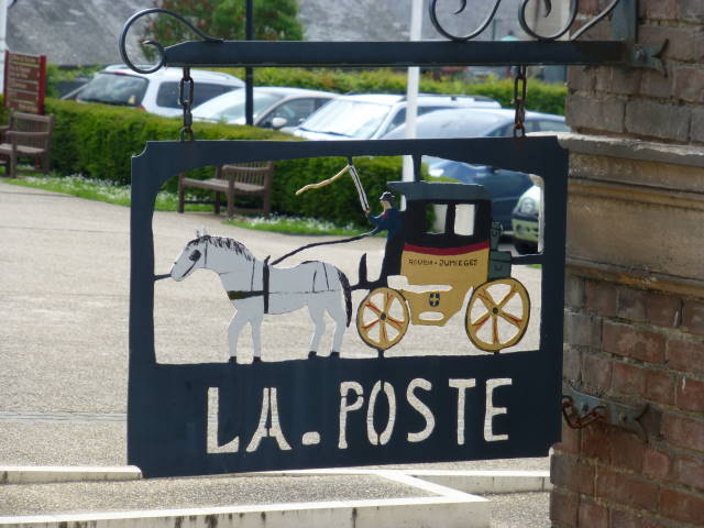 ジュミエージュ(Jumieges)に着いたのが14:20。これは駐車場横にある、郵便局兼観光案内所。