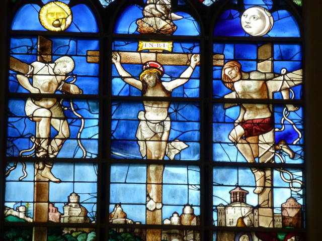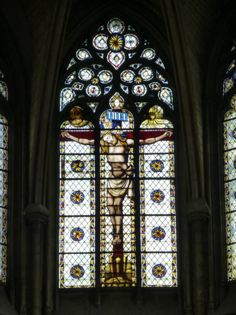 現存この教会がある旧市場広場(Pl.du Vieux Marche)で、1431年にジャンヌ・ダルクは19歳で火刑に処されました。1920年、