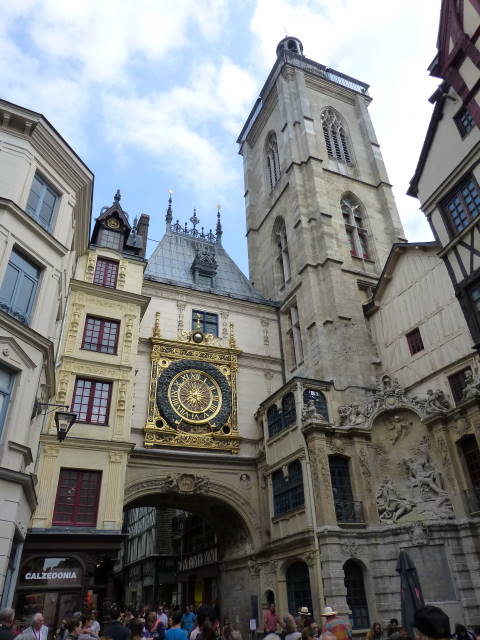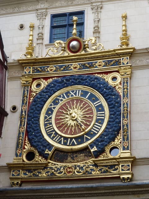 14世紀に製作された大時計(Gros-Horloge)。鐘塔とアーチからなる建物に時計盤が設置されています。