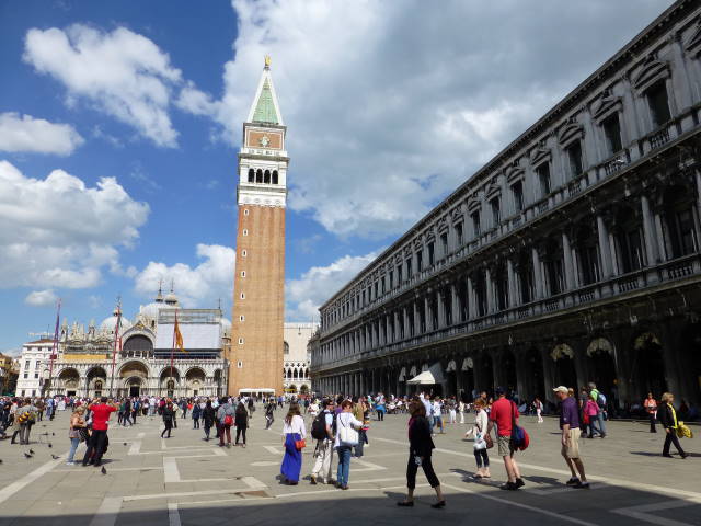 左:サンマルコ広場。サンマルコ寺院とサン・マルコの鐘楼(Campanile di San Marco)。