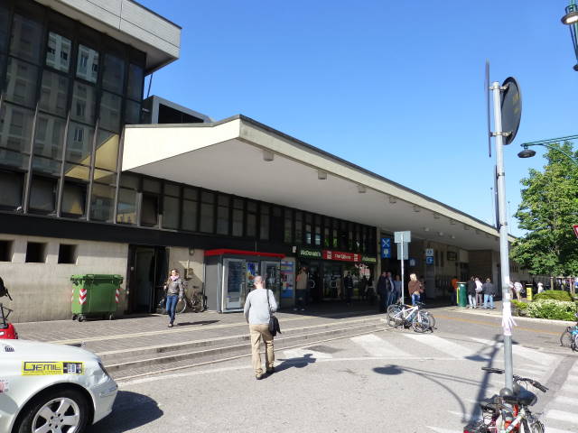 左の写真がメストレ駅(Stazione di Venezia Mestre)。右の写真は切符の自動販売機。