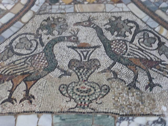 こちらは床のモザイク。じっくり見入ってしまうほどの出来栄え。