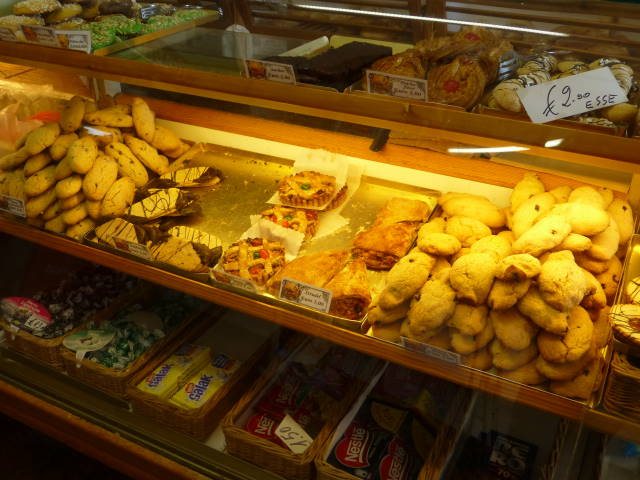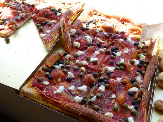 ピザ1ピース(2.5EUR)と、カミさんが甘い菓子のようなケーキ(2EUR)を購入。教会前の広場で食べました。