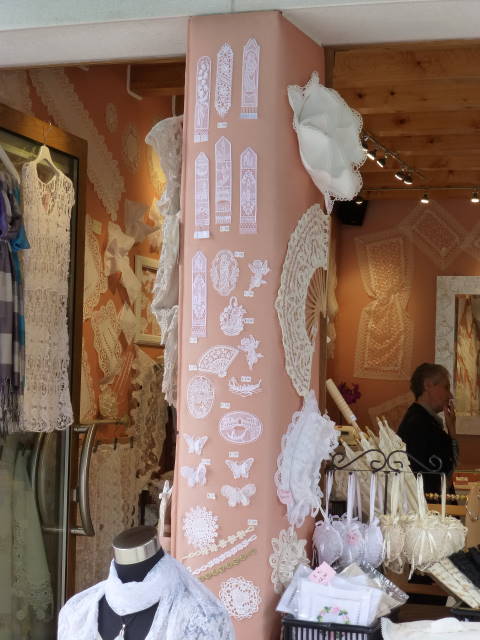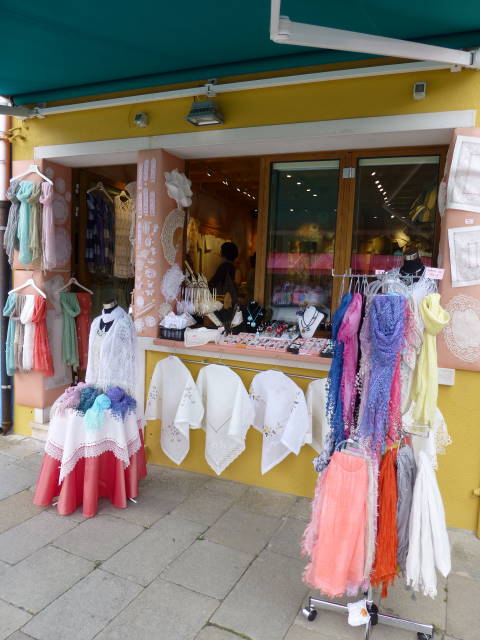 ブラーノ島はレースが有名。写真のような土産屋から、1枚数千ユーロもするアンティークレースを売る店まで様々。