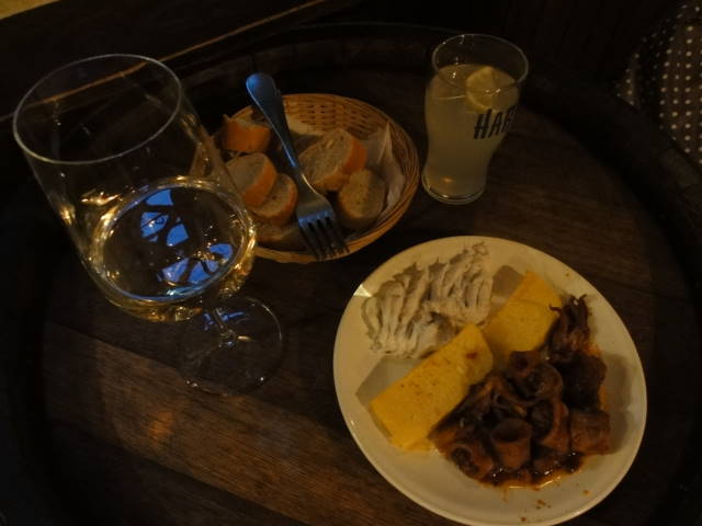 ワインとレモネード、小皿料理を注文して、こちらも会計は12EUR。