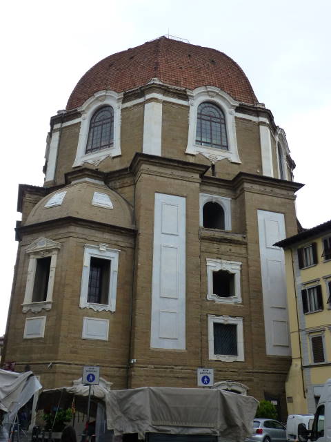 ここはサンロレンツォ教会(Basilica di San Lorenzo)に付属する、新聖具室 (Sagrestia Nuova) と君主の礼拝堂と呼ばれる2棟の建物の総称。