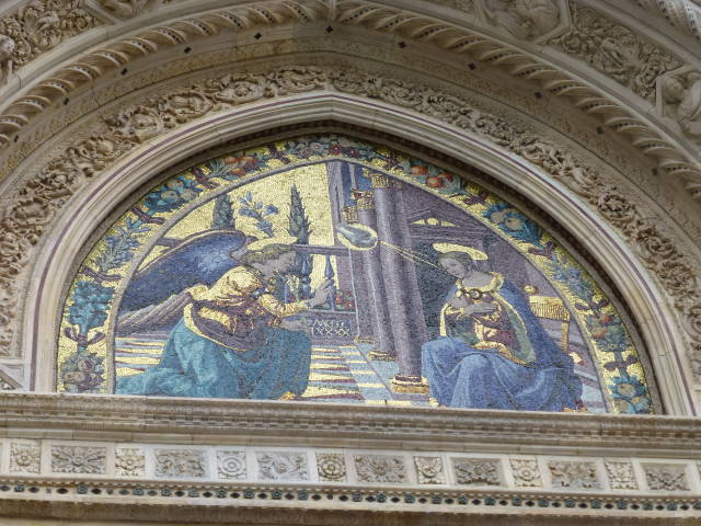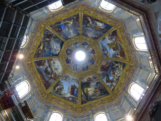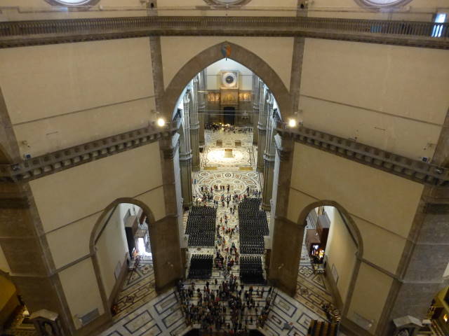 まずはクーポラ(ドーム型の天蓋)の頂部へ、入場料は8EUR。入口上のモザイク画と、途中から見下ろす大聖堂内部は必見。