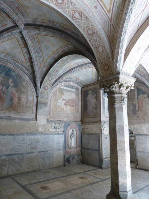 2階は僧房。小さな部屋がいくつも続き、各部屋にキリスト伝の一場面が描かれています。