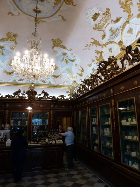 こちらはサンタ・マリア・ノヴェッラ薬局。13世紀にドミニコ会の修道僧が薬草を栽培して薬剤を調合、以来800年以上経過した今も続いている、世界最古の薬局。