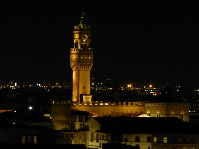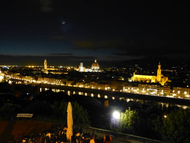 一旦ホテルへ戻って、暗くなるのを待って車でミケランジェロ広場(Piazzale Michelangelo)へ。