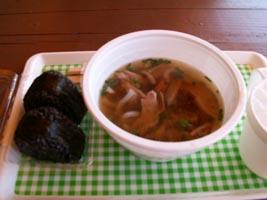 ←イカ墨のジューシーおにぎりと中身汁。中身とは豚の内臓のことで、その名の通り