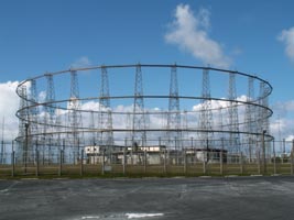 直径200m、高さ28mのケージ型アンテナ。1996年に借地権延長を拒否した