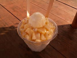 ホテルに向かう前に再び「おんなの駅」へ。アイスマウンテンのパイナップル(左)、