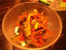 ホタテとムール貝のウニ焼き&もずくの天ぷら(右)を食べました。