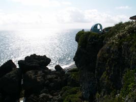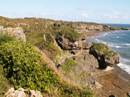 左:「喜屋武岬」。俗に沖縄本島最南端とされていますが、実際には