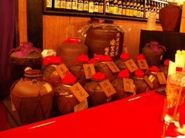 店内の様子。泡盛の瓶と一升瓶が所狭しと並んでいます。