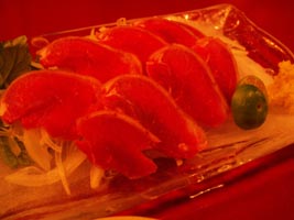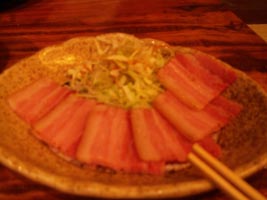 右:山羊の刺身。もっとクセと臭いがあって食べにくいものと