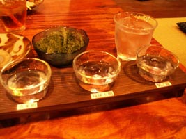 古酒の利き酒セット。左から久米仙、琉球王朝、菊之露。
