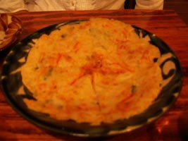 右:店オリジナルのチヂミ。