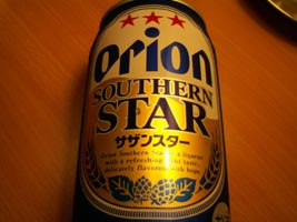 左:オリオン生ビールとお通し。