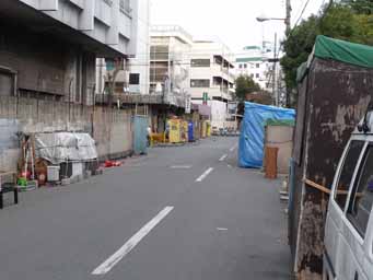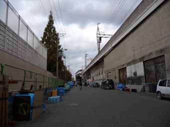 段ボールハウスが所狭しと並んでいます。他にもバラック製の