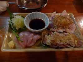 刺身3種盛(豚ガツ・ハツ・鳥ササミ)も頼んだら、こちらも