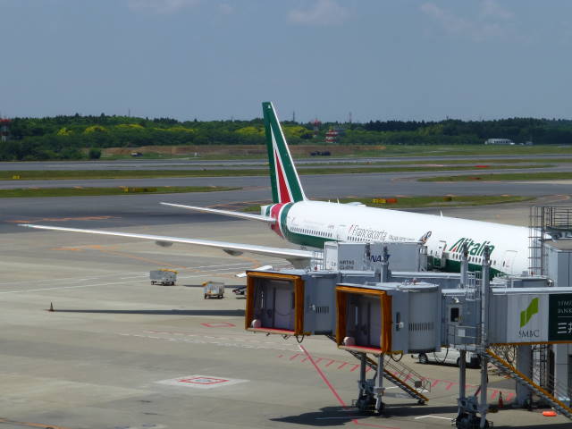 成田発AZ785便は、定刻の13:15に出発。機材はボーイング777-200ER。